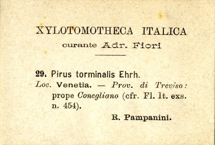 Località: Venetia. – Prov. di Treviso: prope Conegliano (cfr. Fl. It. exs. n. 454).